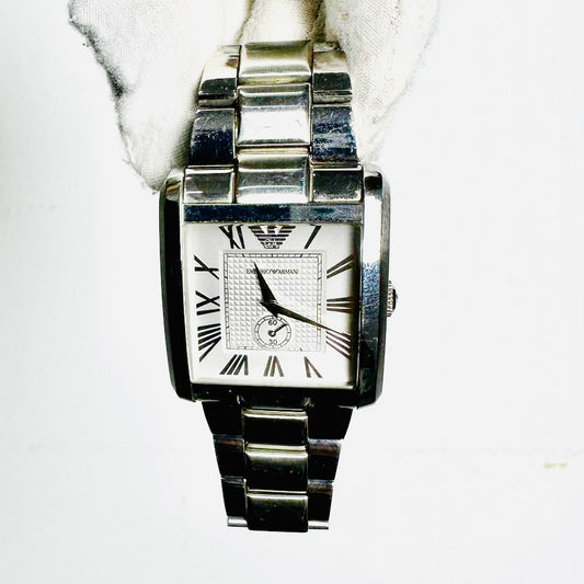 Emporio Armani White Rectangular Dial Stainless Steel 37MM Quartz Watch