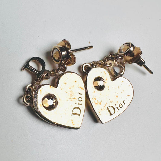 Christian Dior CD Gold Giant Heart Monogram Logo Dangling Stud Earrings