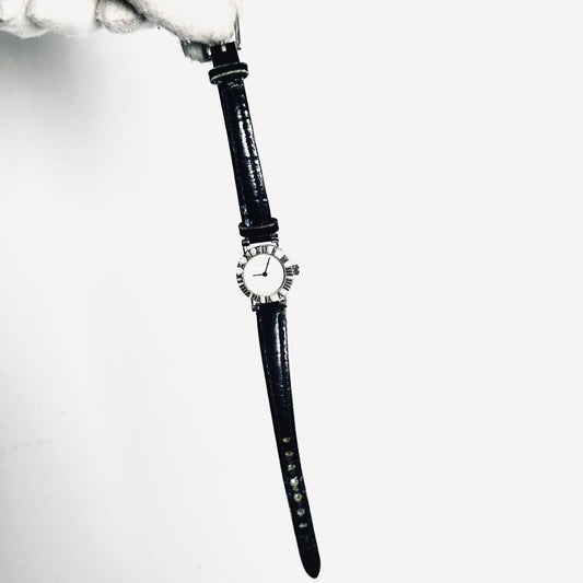 Tiffany & Co T&C Atlas Round White Dial Black Leather Strap 20MM Quartz Watch