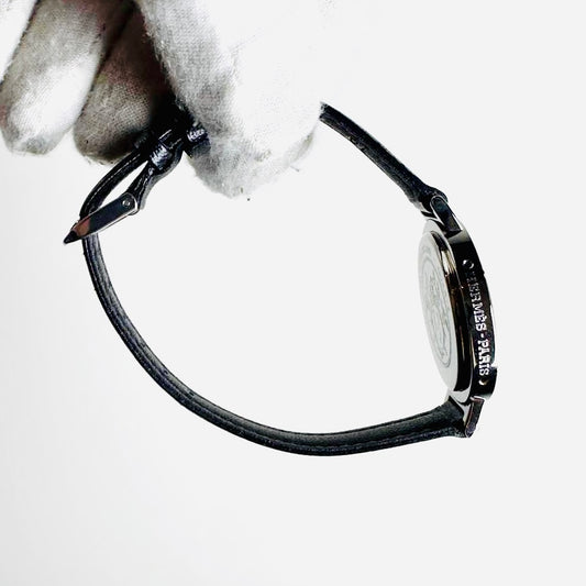 Hermes Arceau Clipper 30MM Gold & Stainless Steel Crystals Black Leather Strap Quartz Watch