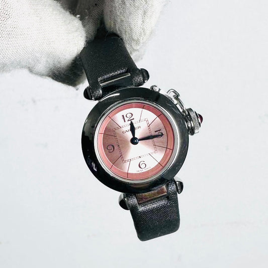 Cartier Miss Pasha 2973 Stainless Steel Pink Round Dial Monogram Logo 27MM Quartz Watch