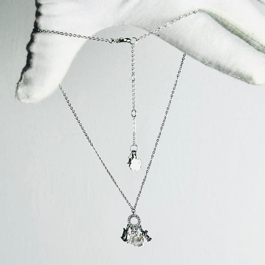 Christian Dior CD Giant Monogram Logo Charms & Clover Pendant Silver & Crystals Necklace