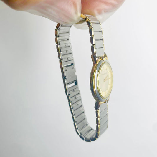 YSL Yves Saint Laurent Gold & Stainless Steel Round Circle Monogram Logo 25MM Quartz Watch