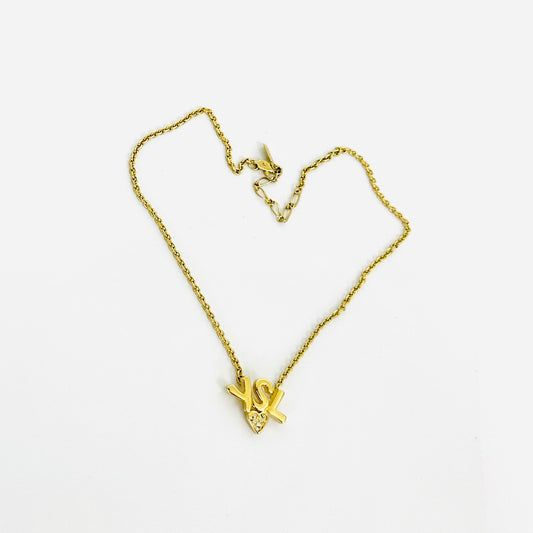 YSL Yves Saint Laurent Gold Monogram Logo & Crystal Heart Pendant Necklace