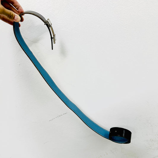 Hermes Black / Blue Bleu Jean Constance Monogram Logo H Reversible 32MM Smooth / Epsom Leather Iconic Belt