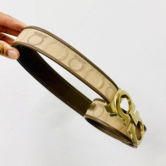 Salvatore Ferragamo Taupe / Beige GHW Gancini Giant Monogram Logo Classic Iconic Belt