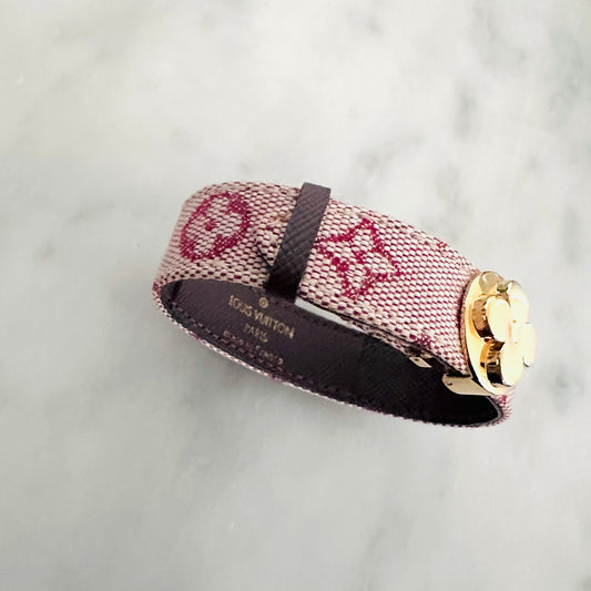 Louis Vuitton LV Pink GHW Good Luck Mini Lin Monogram Logo Bracelet