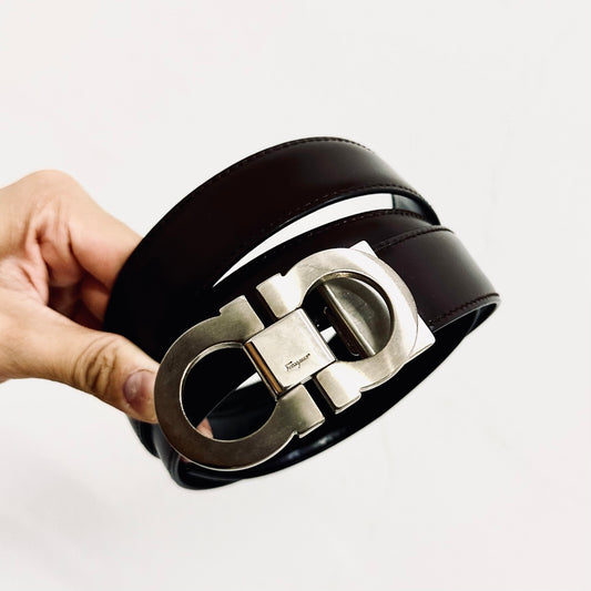 Salvatore Ferragamo Dark Brown Gancini Giant Monogram Logo Smooth Calfskin Classic Iconic Belt