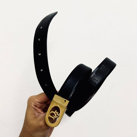 Christian Dior CD Black GHW Giant Buckle Logo Smooth Leather Iconic Belt