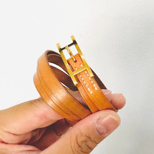 Hermes Gold GHW Behapi Triple Tour Smooth Leather Bracelet
