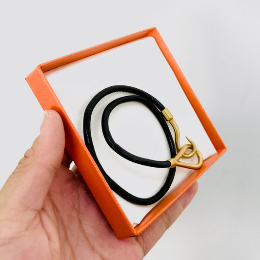 Hermes Black GHW Jumbo H Leather Clasp Bracelet Bangle