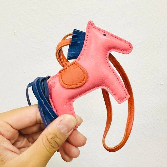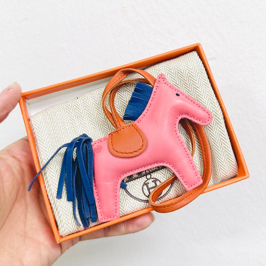 Hermes Rodeo PM Milo Lambskin Bag Charm Tri Colour Rose Azalee / Bleu De Malte / Cornelian Feu