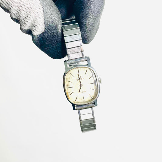 Omega De Ville Square White Dial Stainless Steel Expandable 24MM Vintage Watch