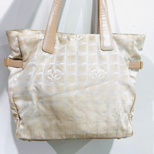 Chanel Beige Travel Line Quilted Jacquard Monogram Logo 2-Way Shoulder Shopper Tote Bag 6s