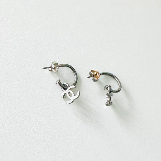 Chanel Classic CC Logo Silver Dangling Vintage Stud Earrings