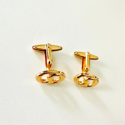 Christian Dior CD Monogram Logo Signature Classic Gold Cufflinks