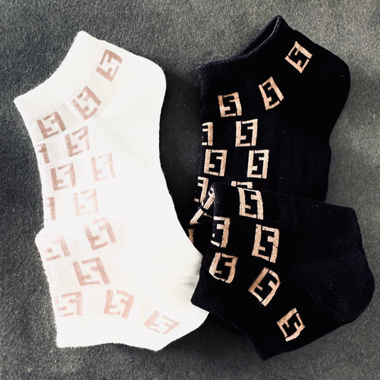 Fendi Zucca FF Monogram Logo White & Black Ankle 2 Pairs Of Socks