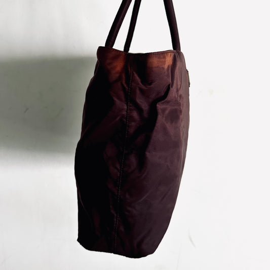 Prada Maroon Burgundy Red Classic Logo Nylon Shopper Zip Shoulder Tote Bag
