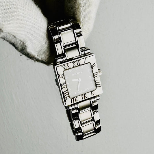 Tiffany & Co T&C Atlas Black Square Dial Roman Numerals 23MM Quartz Watch