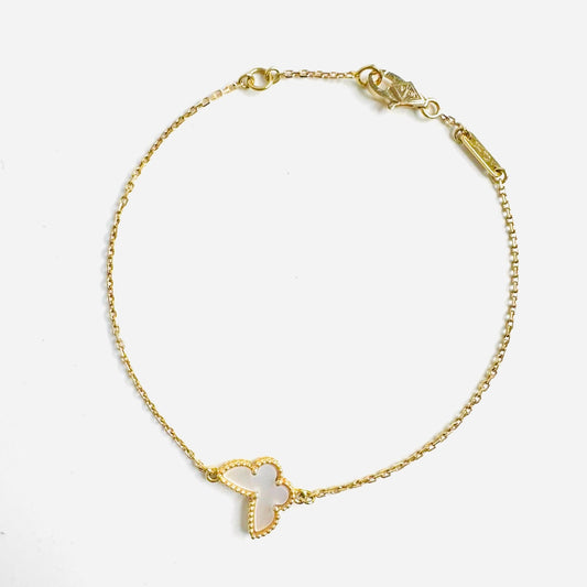 Van Cleef & Arpels VCA Sweet Butterfly / Butterflies Motif MOP Mother Of Pearl 18K Yellow Gold YG Monogram Logo Chain Bracelet