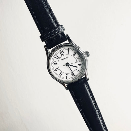 Tiffany & Co T&C Portfolio Round White Dial Black Leather Strap 23MM Quartz Watch