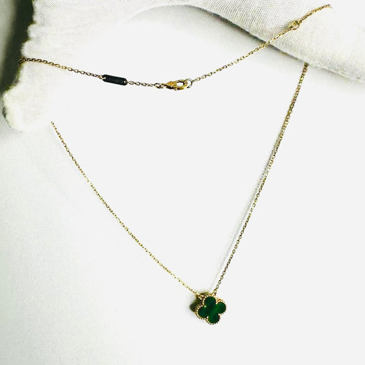 Van Cleef & Arpels VCA Vintage Alhambra Motif MOP Malachite Green 18K Yellow Gold YG Monogram Logo Chain Necklace