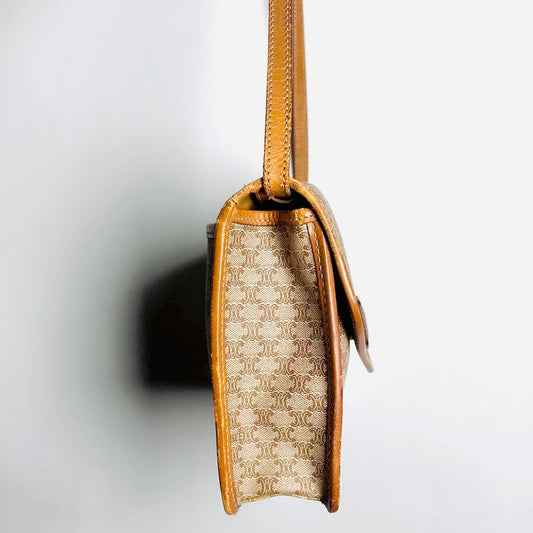 Celine Beige GHW Triomphe Macadam Monogram Logo Flap Small Vintage Shoulder Sling Bag
