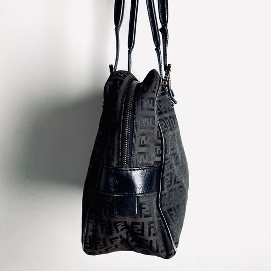 Fendi Zucca Dark Brown FF Monogram Logo Shoulder Shopper Boston Tote Bag