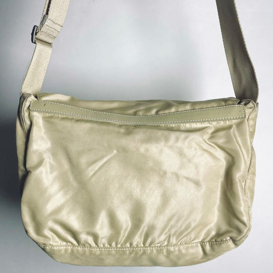 Prada Beige Taupe Vela Classic Logo Nylon & Leather Flap Shoulder Sling Bag