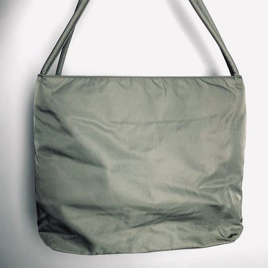 Prada Dark Khaki Tessuto Monogram Logo Hobo Baguette Shoulder Bag