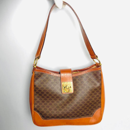 Celine Triomphe Macadam Monogram Logo GHW Vintage Hobo Flap Shoulder Bag