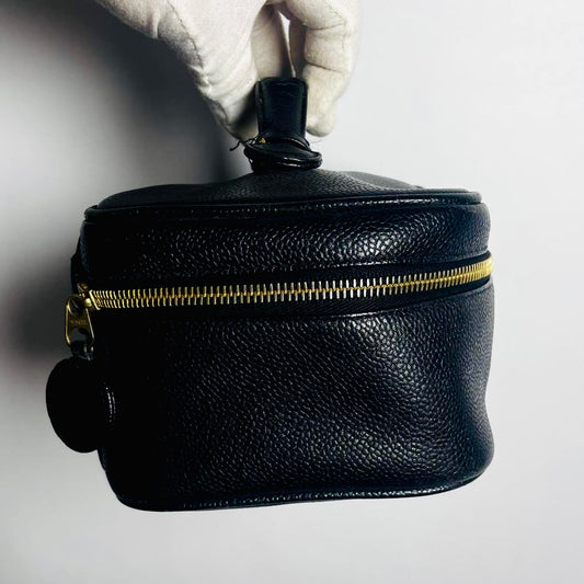Chanel Black GHW Giant CC Logo Caviar Wide Horizontal Vanity Case Vintage Top Handle Bag