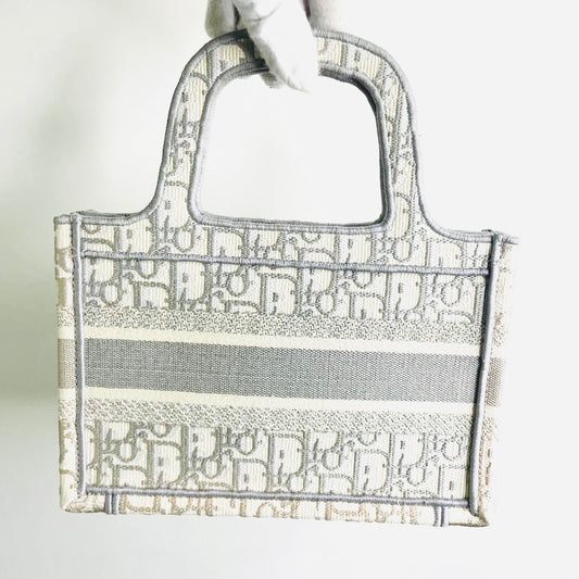 Christian Dior CD Grey / Gray Cannage Quilted Embroidery Oblique Monogram Logo Mini Book Tote Bag