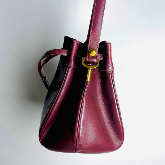 Cartier Mast / Must de Cartier Burgundy Maroon Red GHW Smooth Leather Bucket Shoulder Drawstring Bag
