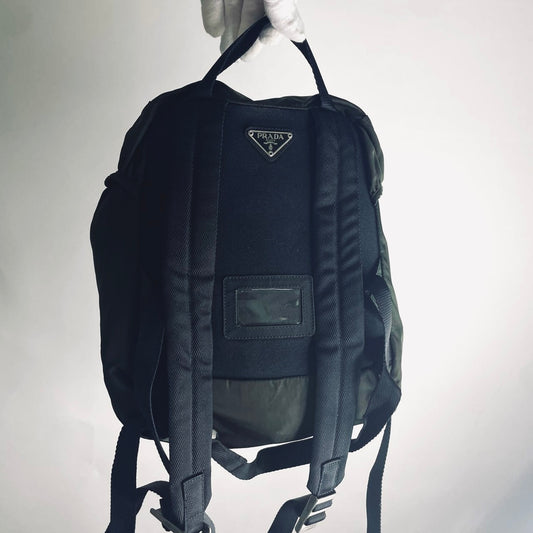 Prada Dark Green Classic Tessuto Nylon Logo Backpack Drawstring Bag