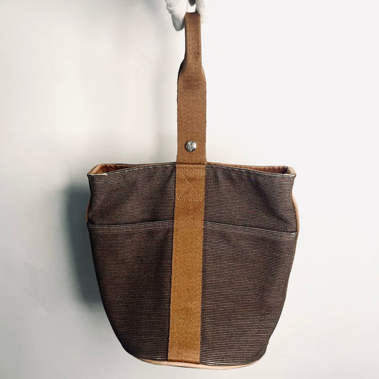 Hermes Tan / Brown Toile Saxor MM Bucket Tote Bag
