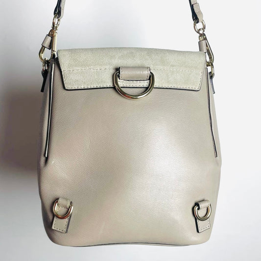 Chloe Faye Grey / Gray GHW Small 2-Way Suede & Leather Monogram Logo Shoulder Top Handle Bag
