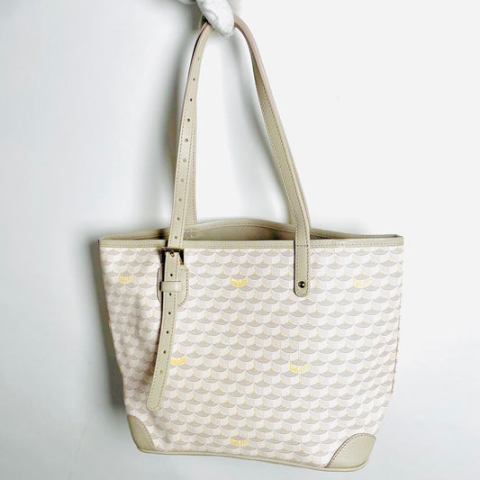 Faure Le Page FLP Sable Taupe Beige Daily Battle 27 Monogram Logo & Leather Shopper Shoulder Tote Bag