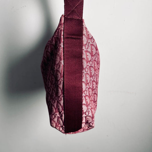 Christian Dior CD Saddle Maroon Red Oblique Monogram Logo Hobo Baguette Shoulder Sling Bag