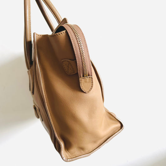 Celine Dune Beige GHW Mini Luggage Monogram Logo Shopper Shoulder Tote Bag