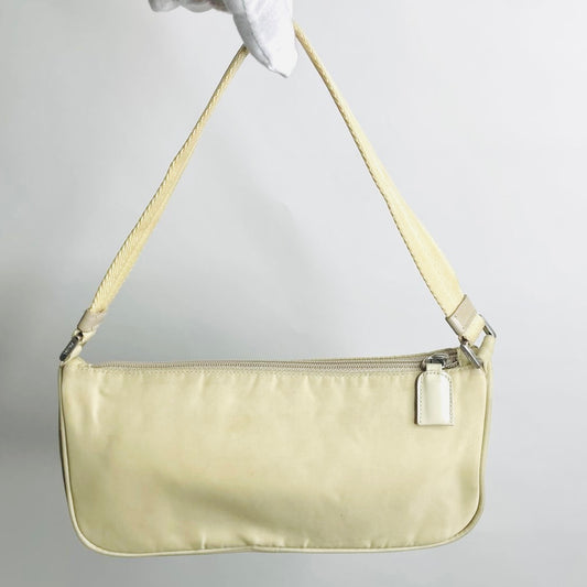 Prada Cream Ivory Tessuto Monogram Logo Nylon Hobo Baguette Pochette Shoulder Bag