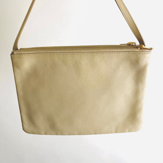 Celine Taupe Beige GHW Large Trio Logo Lambskin Leather Shoulder Sling Bag / Pouch Clutch Case