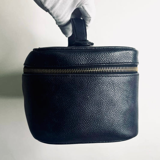 Chanel Black GHW Caviar Giant CC Logo Wide Horizontal Vanity Case Vintage Top Handle Bag 4s