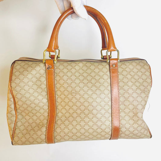 Celine Beige Triomphe Macadam Monogram Logo GHW Boston 35 Speedy Vintage Bag