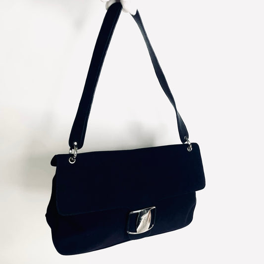 Salvatore Ferragamo Black Vara Bow Monogram Logo Hobo Baguette Flap Shoulder Bag