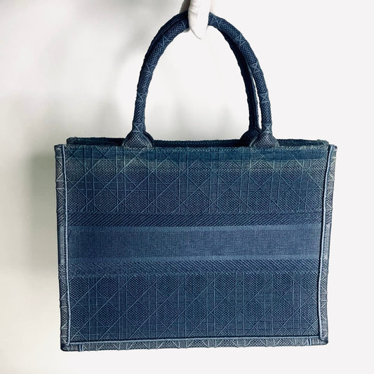 Christian Dior CD Blue Cannage Quilted Embroidery Monogram Logo Medium Book Tote Bag
