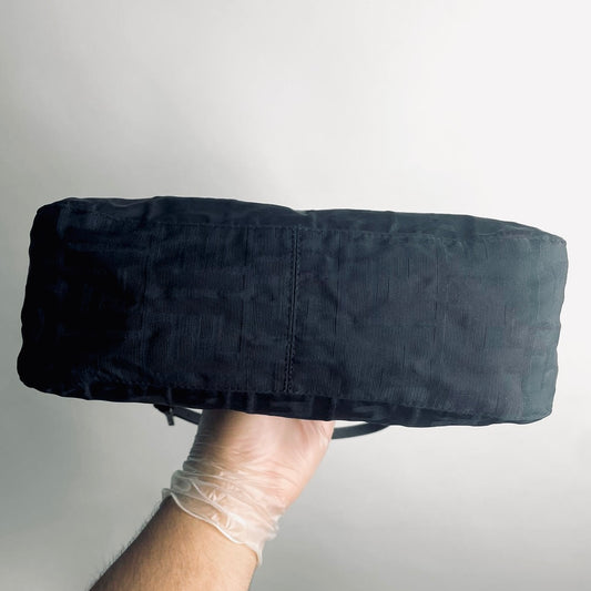 Fendi Zucca Black FF Monogram Logo Baguette Hobo Pochette Shoulder Flap Bag