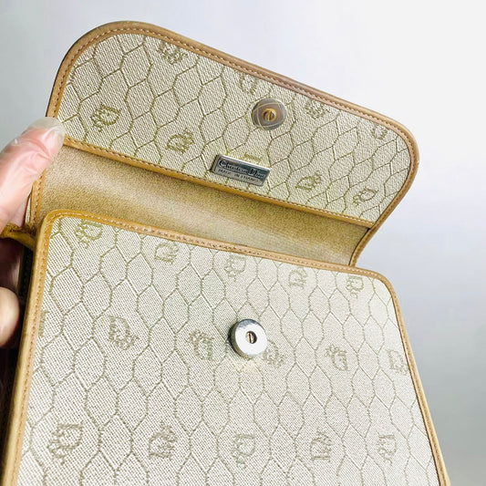 Christian Dior CD Beige Honeycomb GHW Oblique Monogram Logo Vintage Flap Shoulder Sling Bag