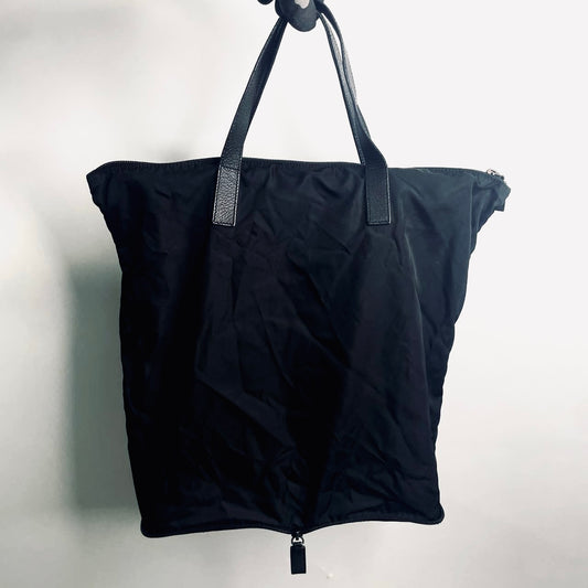 Prada Black Tessuto Classic Monogram Logo Nylon Shopper Shoulder Packable Tote Bag