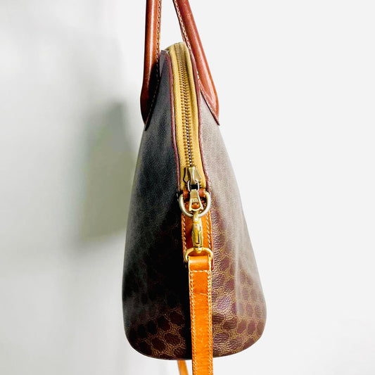 Celine Alma Triomphe Macadam Monogram Logo GHW Bandouliere Vintage 2-Way Top Handle Shoulder Sling Tote Bag